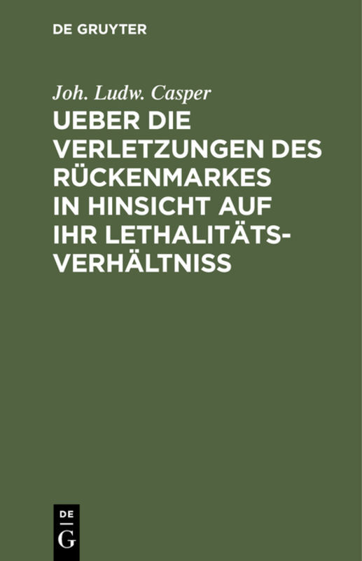 Ueber die Verletzungen des Rückenmarkes in Hinsicht auf ihr Lethalitäts-Verhältniß